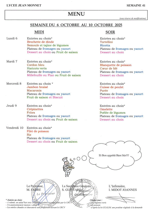 A la cantine cette semaine ! En brefManuels et fournitures scolaires 2025-2026 Qui fait quoi Coordonnées de la vie scolaire Pour joindre la vie scolaire pour signaler une absence d’élève :